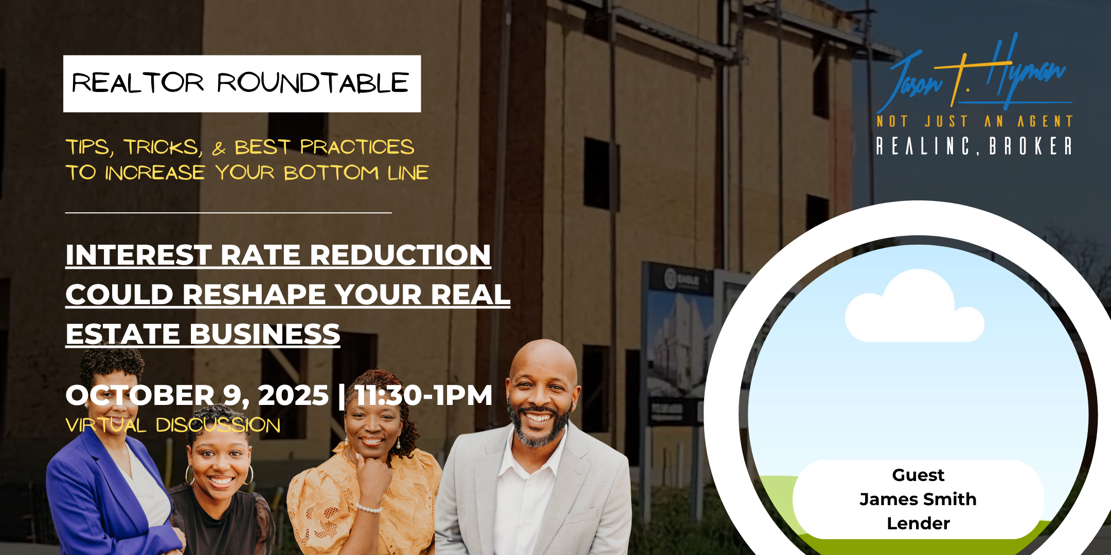 The Realtor Roundtable is a monthly industry conversation hosted by Jason T. Hyman that brings together real estate professionals and partners to discuss timely market trends. This session will focus on the recent interest rate reduction and what it means for your business.